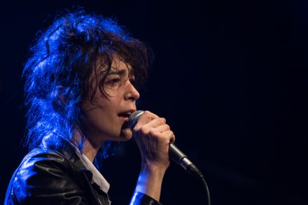 Malgré ce grain de folie et la joie qu’elle a de remonter sur les planches, on la sent fragile. Quand elle n’a plus de mots à chanter, elle tente de dissimuler l’émotion qui l’étreint et enchaîne avec un second titre inédit qu’on prend plaisir à découvrir dans la salle noire et comble. Le reste du set, elle joue plutôt la carte de l’humour, de l’auto-dérision et de l’improvisation. Elle se moque de sa jupe qu’elle trouve moche, a parfois cet air un peu perdu et nous fait rire avant d’entamer un morceau triste et personnel, persuadé de tout foutre en l’air. Double personnalité, elle l’exprime pleinement, joue la pimbêche pour se transformer l’instant d’après en la bête du Gévaudan. Ses titres sont à l’image de sa personnalité, entre mélancolie et poésie, sourire moqueur et peps. Tantôt fleur bleue, tantôt bagarreuse.