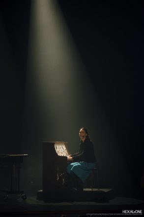Chaque nouveau spectacle d’Amélie (et c’est le quatrième) se révèle original, créatif et … nouveau. Mais on y retrouve toujours, avec plaisir, sa superbe voix et sa belle présence sur scène. Elle a gardé la proximité avec le public à qui elle fait faire des mouvements décontractants pour les articulations en introduction, et au cours duquel elle invite deux femmes à danser sur scène. A nouveau, elle utilise un piano personnalisé qui, cette fois devient lumineux. Certains titres semblent venir du folklore avec la rythmique de danses traditionnelles. On y entend les titres du nouvel album bien sûr. Avec des mélodies limpides et quelques beaux moments d’émotion « C’est la vie, c’est l’espoir et la lumière qui nous poussent tous dehors / On s’en va avec rien passer les frontières juste nos corps». Avec une chanson d’amour, simple et qui fait mouche : « Pour s’embrasser c’est pas compliqué / C’est deux bouches pour le même baiser ». Elle reprend un titre de chaque album d’avant : Les filles des forges du précédent, La maigrelette du second et Ta p’tite flamme, sa chanson fétiche, en rappel jouée à trois au marimba.