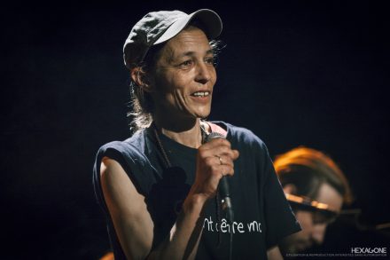 Flow le jeudi 13 avril. Ceux qui ne la connaissaient pas ont eu un vrai coup de cœur et un coup au cœur. Ceux qui comme moi, la voient souvent ces derniers temps (c’était le quatrième concert en un an), continuent à apprécier sa force d’interprétation et l’émotion qu’elle procure. Avec cette voix puissante et un peu cassée, cette artiste authentique et entière, la sensibilité à fleur de peau, fait mouche et nous touche au cœur et aux tripes. Le répertoire devient de plus en plus centré sur les enfants avec des chansons aux mots simples sur des sujets forts. Avec son look de punk elle chante sa berceuse, Le sourire d’un môme, qui fait souvent pleurer comme la plus récente Bataclan. Elle se produit en duo, qu’elle appele Les Flow, avec son guitariste choriste hors-pair Etienne Abellion. Souriante sur scène, faisant montre d’une belle énergie, depuis ses derniers concerts, elle se réapproprie de façon extraordinaire Lily de Pierre Perret, et finit par une chanson d’amour Suspendue. Pour ceux qui ne l’ont jamais vue, ne la ratez pas.