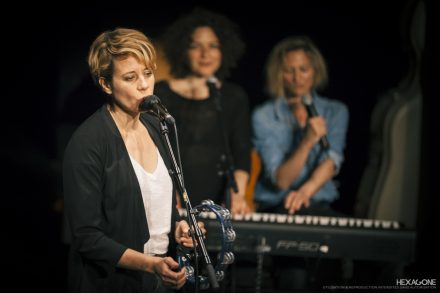 On a particulièrement apprécié Leopoldine HH, récente gagnante du prix Moustaki, d’abord en trio pour Blumen im topf joliment mis en scène, elle avec une petite harpe et ses deux musiciens … sans instrument, puis seule au clavier dans une interprétation d’un texte de Topor (Zozo lala). Un autre moment particulier, Laura Cahen a chanté son premier titre avec trois choristes : Katel (récompensée également pour son album Elégie) et ses deux musiciennes.