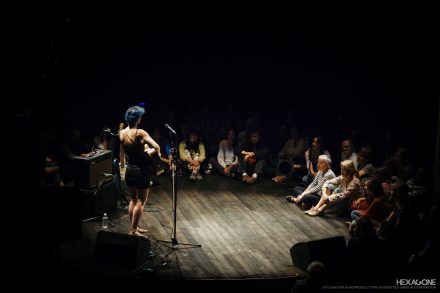 La séquence émotion continue avec Camille Hardouin (ex Demoiselle Inconnue) le vendredi 14 avril. C’est l’artiste que je vois le plus en ce moment et tu peux lire un article complet sur trois de ses prestations – en six semaines – dans le dernier numéro de ton magazine trimestriel préféré où tu trouveras aussi sa présentation des chansons de son premier album Mille Bouches qui sort officiellement le 28 avril. Je vais juste insister sur le caractère singulier de ce concert car avec son set plutôt « habituel » on l’a sentie particulièrement émue et heureuse. La cause semble en être la conjonction de la beauté de ce théâtre et de l’intensité du moment car pour la première fois, elle amenait son album dans ses bagages. Après une prestation prenante, elle a invité les spectateurs qui le souhaitaient à venir s’asseoir sur scène autour d’elle (« Le concert est fini. Vous pouvez partir. Vous pouvez aussi venir avec moi« ). Et elle chante a cappella Le partisan de Cohen en anglais et en français, accompagnée par une partie du public. Beau moment d’émotion. Vu le nombre de disques vendus à la fin du concert, l’artiste n’était pas la seule à attendre la sortie de l’album. Allez je vais me répéter mais, comme pour Flow, pour ceux qui ne l’ont jamais vue, ne la ratez pas.