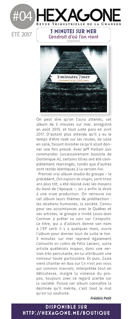 Albums 3 minutes sur mer – L’endroit d’où l’on vient Par David Desreumaux - 9 septembre 2017 0 1982 FacebookTwitter Share this: Click to share on Facebook (Opens in new window) Facebook Click to share on X (Opens in new window) X