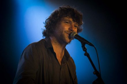 Ceux qui l’avaient vu quelques temps voire quelques années auparavant ne trouveront plus de piano sur scène, l’artiste se présente désormais en duo de guitares. Clément Bertrand, physique de rugbyman, regard baigné d’humanité, écriture de poète, voix rauque et sensibilité à fleur de Peau (bleue) – Peau Bleue titre de son dernier album et de ce spectacle. En début de concert, il nous prend par la sensualité avec Ta nuque. Un peu plus tard, il ajoute l’érotisme quand il décrit les nuits de sa compagne en son absence (Le toucher, inédite sur album) « Lorsque son mec est parti, mon amoureuse se touche /… Elle va sa main caressant sous le tissu qui la contient / … Elle se bat contre la nuit / Et c’est le jour qui la couche ». Cœur et corps en forte proximité : « d’un seul geste on peut toucher / Et ton sein et ton palpitant » (Perles de sueur). Chaleur des mots crus dans la chaleur Avignonnaise. Les thèmes du concert sont les femmes et les femmes, l’amour (parfois amer), la mer et la mort. Cet habitant de l’île d’Yeu, colosse à la plume océane et imagée, nous envoie des vagues de tendresse et d’amour.