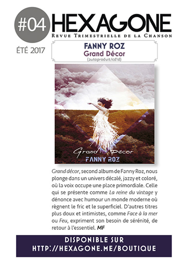 Albums Fanny Roz – Grand décor Par David Desreumaux - 30 septembre 2017 0 1997 FacebookTwitter Share this: Click to share on Facebook (Opens in new window) Facebook Click to share on X (Opens in new window) X