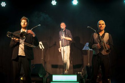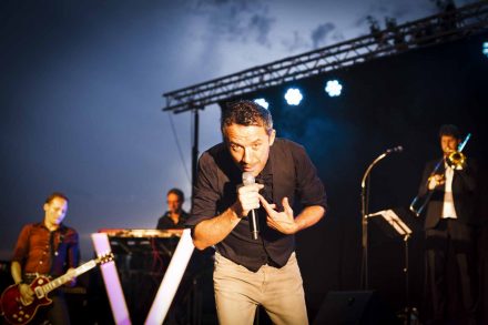 Jules arrive sur scène avec ses six « vilains » musiciens. Les locaux se rapprochent doucement de la scène en voyant arriver un orchestre. Ils pensent peut être écouter un orchestre de bal, voire un orchestre à deux balles. Or cet orchestre, c’est de la balle ! Ces musiciens assurent musicalement (section cuivre, basse et guitare, batterie et clavier) et s’impliquent sur des superbes chœurs. Et cet orchestre, au top, est au service d’un véritable show-man : Jules, superbe voix, grande activité et puissante présence.