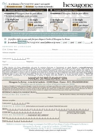Le lien de l’abonnement à la revue papier à 69 €/ an est le suivant : http://hexagone.me/produit/abonnement-an-4-numeros/