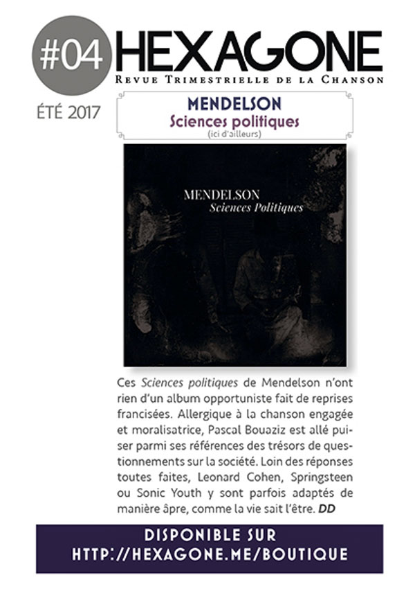 Albums Mendelson – Sciences politiques Par David Desreumaux - 2 octobre 2017 0 1890 FacebookTwitter Share this: Click to share on Facebook (Opens in new window) Facebook Click to share on X (Opens in new window) X