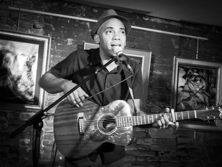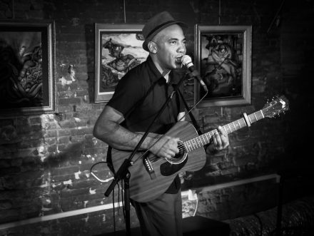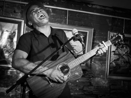 Davy Kilembé, s’est produit pendant cinq jours, du 28 novembre au 2 décembre, dans le cadre de l’apéro-spectacle du Théâtre du Grand Rond à Toulouse. Il venait de partager, quelques jours plus tôt et en formule trio, un plateau « Occitanie » à Langogne avec Chouf et Camu.
