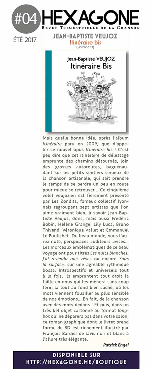 Albums Jean-Baptiste Veujoz – Itinéraire bis Par David Desreumaux - 13 janvier 2018 0 1921 FacebookTwitter Share this: Click to share on Facebook (Opens in new window) Facebook Click to share on X (Opens in new window) X