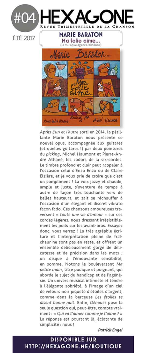 Albums Marie Baraton – Ma folie aime… Par David Desreumaux - 17 janvier 2018 0 1962 FacebookTwitter marie Share this: Click to share on Facebook (Opens in new window) Facebook Click to share on X (Opens in new window) X