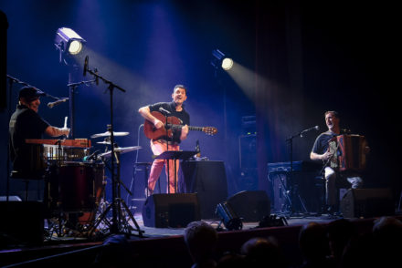 Le soir, au foyer des Campagnes, Yves Jamait propose sa belle Parenthèse acoustique dont tu peux relire ici le compte-rendu du concert et l’interview lors du passage au Bijou à Toulouse fin février. Que dire de plus, sinon que quelques semaines et quelques concerts plus tard, rien n’a changé dans ce spectacle qui montre toujours le même talent et la même générosité. Mais le spectacle apparaît encore plus rôdé, le trio encore plus complice, les interventions d’humour entre les chansons encore plus nombreuses et toujours réussies, et le public toujours aussi nombreux (le concert affichait complet depuis plusieurs jours) et constitué d’une grande majorité de fidèles connaissant et reprenant les refrains et parfois la totalité de la chanson. Comme souvent, ces fidèles d’Yves Jamait se sont déplacés, parfois venant de régions éloignées, certains pour leur troisième concert de cette tournée, une personne dépassant même les quarante concerts de l’artiste. Si la tournée de Presque Oui ou d’Yves Jamait passe par chez toi, ou pas très loin, n’hésite pas, tu vas bénéficier d’une ou de deux belles soirées.