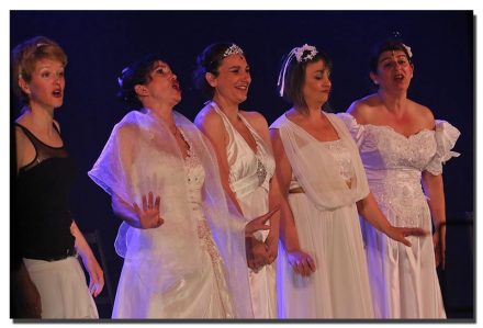 Si tu as eu ta dose de chanson mais que tu veux retrouver certaines artistes que tu apprécies, c’est possible. Tu peux faire un tour au théâtre et y voir Ottilie[B] dans Stabat Mater Furiosa. Ottilie est restée au théâtre de l’Arrache-cœur où elle chantait l’été dernier, en passant de la salle Moustaki à la salle Vian, et en changeant de moyen d’expression. C’est à 11h30 sauf les mercredi 11, 18, 25. Tu peux voir Hélène Piris dans TagadaTsing, un quartet vocal parodique qui revisite un répertoire anglo-saxon (à 16h05 au Rouge Gorge). Nathalie Miravette, chroniquée pour son spectacle chanson l’an passé, joue Duel, un duo musical d’humour pour piano et violoncelle, à 21h au Théâtre des Béliers.