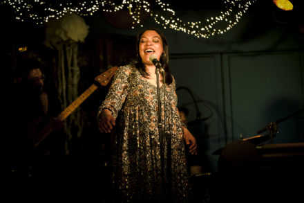 « Collectionneuse de sourires », Aurélie chante dans Aujourd’hui le plaisir d’avoir trouvé sa voie (la chanson bien sûr !) – un plaisir palpable, visible et contagieux dans la salle. Sa voix est claire, limpide, assurée, et invite à une balade des plus agréables durant ce spectacle complet reposant sur une construction simple mais efficace ; l’enchaînement des titres est entrecoupé de courtes présentations, souvent bien bâties, qui évitent de déflorer le contenu de la chanson à venir. Juste une mise en bouche pour donner du rythme, créer de l’attente. Parfois Aurélie donne une clé, comme pour Le cercle, morceau précieux qui raconte l’instant qui précède la noyade, qu’elle a failli connaître enfant à l’île d’Oléron : « Est-ce que si le cercle se referme je me noie / Est-ce que les sirènes en enfer se vouvoient… »