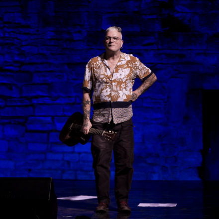 Après Alexandra Gatica et Simon Chouf sous le chapiteau, place à l’espace Jean-Ferrat en soirée. En ouverture, découverte totale pour une bonne partie du public, Juliette Kapla et Claire Bellamy. Un spectacle en grande partie fondé sur l’improvisation, qui n’aura pas convaincu. Puis vient Sanseverino, seul en scène – juste une chaise et deux guitares qu’il manipule avec une dextérité hors du commun – pour donner du François Béranger.  Pour chanter Béranger, il faut garder l’esprit anar. Et rock de Béranger. Sans doute Béranger soi-même aurait détesté des reprises  conservées dans du formol pour respecter « le maître ». Avec Sansev’, peu de risques de se croire à l’église. L’homme est bien trop insaisissable, trop peu sage, inclassable. Mais respectueux, libertaire comme il faut l’être. Les chansons de Béranger, dans sa gratte et dans sa bouche, sont autant les siennes que celles du bon vieux père François, trépassé en 2003. Rappelons au passage que la dernière apparition scénique de l’auteur de Natacha fut à La Cigale en 2002 à l’invitation de Sanseverino, qui reprenait à l’époque Le tango de l’ennui. La compatibilité entre les deux bonshommes n’était dès lors plus à prouver. A Barjac, Sansev’ a produit près d’une heure trente de protest song, d’engagement, de lutte, de tendresse sur fond de blues avec une énergie incroyable. Tout cela augmenté de fraternité, invitant Eric Frasiak – autre grand amateur de Béranger – à le rejoindre sur scène le temps de deux chansons. Tout là-haut, au royaume des anars envolés, on a bien dû se régaler. Dans la salle, c’était aussi le cas.