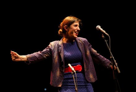 Louise Combier, jeune chanteuse lyonnaise d’une vingtaine d’années, remarquée dans « The Voice » 2020, nous saisit par sa superbe voix profonde et parfois tremblante. Le samedi, elle reprendra Nantes de Barbara. Chantant parfois derrière le pied de micro, parfois au clavier elle ne possède pas l’expérience de la scène des autres, ni semble-t-il la même qualité de texte voire la même complicité avec sa musicienne (« ma nouvelle pianiste » dira-t-elle). Un jeune talent, à revoir.