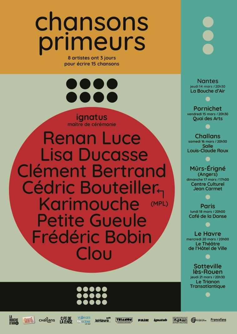En quelques chiffres, depuis sa création, Chansons Primeurs c’est 17 éditions (il y a parfois plusieurs éditions dans une même année), 45 concerts, 88 artistes connus ou en développement (Alexis HK, Féloche, Pauline Croze, Lili Cros & Thierry Chazelle, Laura Cahen, Oriane Lacaille, Arthur Ely, etc.), 272 chansons écrites dont 30 qui ont donné lieu à des enregistrements (Comme Katel et Bonbon Vodou ci-dessous, par exemple).